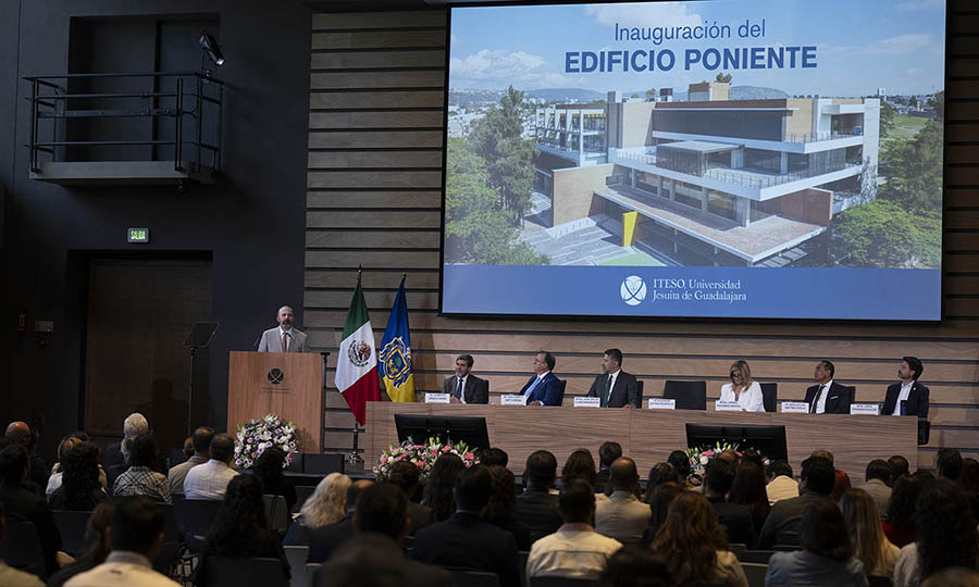 Luego de describirlo como “bello y funcional”, el presidente de ITESO, AC, afirma que la infraestructura no es fin en sí misma, sino que “representa mucho más”. En el caso del Edificio Poniente, tiene por objetivo el encuentro, fomentar el sentido de comunidad y “vivir los valores identitarios de la universidad, confirmar su identidad y colaborar en la transformación del entorno”. En ese sentido, agrega, “el edificio cumplirá su misión si propicia la congruencia con las Orientaciones Fundamentales del ITESO (OFI)”. Así, concluye invitando a todas las personas a disfrutar del edificio y “habitarlo con plena congruencia con la identidad itesiana”.