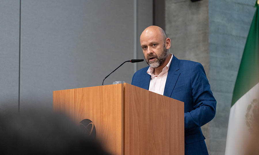 Carlos Sánchez Oyoque, director de la Oficina de Admisión a Licenciaturas, dio la bienvenida a los nuevos integrantes de la comunidad universitaria y los invitó a aprovechar todos los recursos y espacios del campus en esta etapa que espera que sea la mejor de sus vidas.